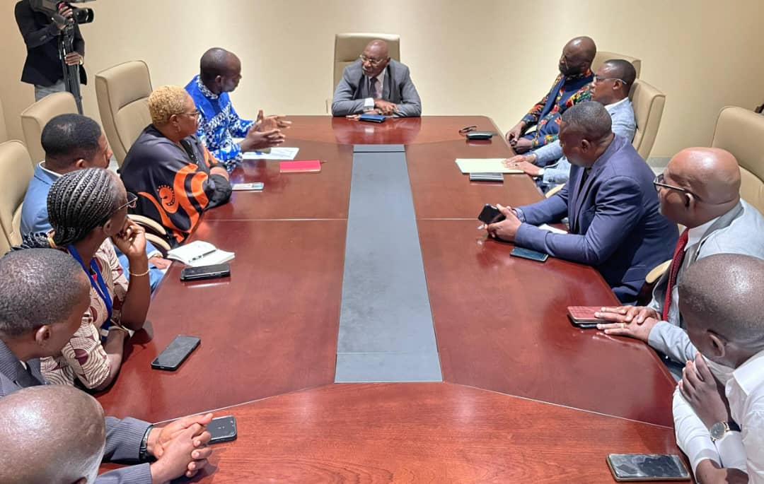La délégation de Camtel était conduite par Georges Essama, responsable marketing et communication pour le fixe. Ils ont été reçue par l'Honorable Mellingui Roger, Président du groupe parlementaire et du réseau parlementaire pour la promotion de l'entrepreneuriat.
